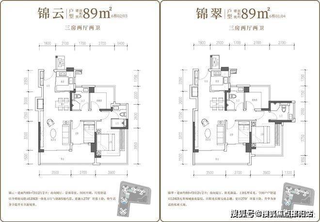 88-89㎡三房两厅两卫(刚需型)采用经典竖厅设计,客厅开间达3.5米,实现LDKB(客厅、餐厅、厨房、阳台)一体化布局,空间通透且互动性强。三开间朝南的设计搭配全屋环绕飘窗,最大化引入自然光线,采光通风效果极佳。