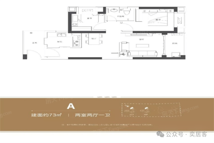 A,2室2厅1卫,建面:73㎡