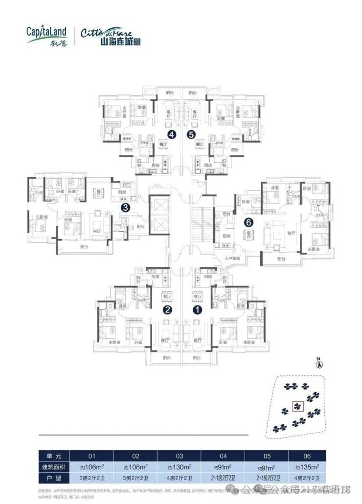 项目一共有5个面积段,分别是85平三房两厅一卫,91/106平三房两厅两卫,130平A户型五房两厅两卫,130平B和135平户型四房两厅两卫。