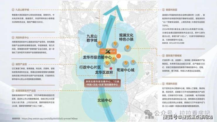 观澜占据龙华70%产业,鹭湖中心城与九龙山数字城双核驱动,聚焦人工智能、生物医疗等高新技术产业;