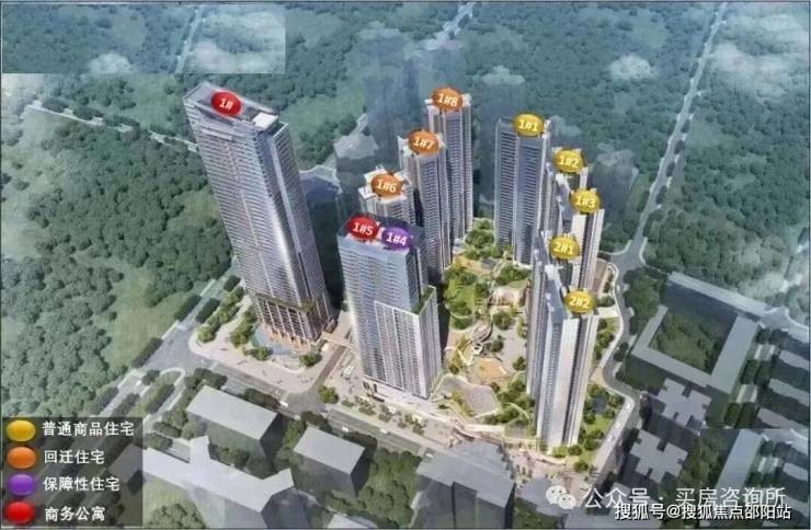 其中1栋1单元/2单元/3单元和2栋1单元/2单元为商品房,1栋4单元为保障房,1栋5单元为商务公寓,1栋6单元/7单元/8单元为回迁房,3栋为幼儿园。