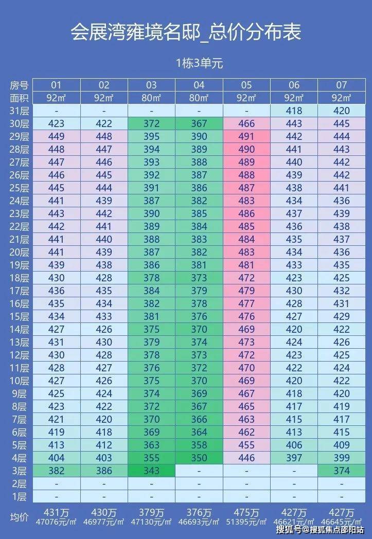 会展湾雍境1栋三单元折后价格:
