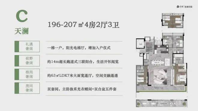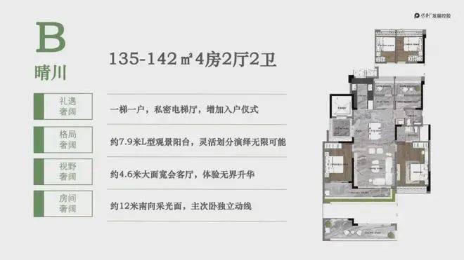 ,是整个项目的高端户型,景观资源最佳,适合追求极致居住体验的改善客户。