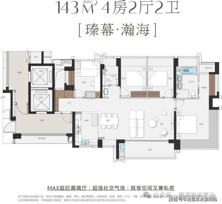 项目主打115-143㎡纯四房,采用4梯5户及专梯入户设计,空间利用率极高。