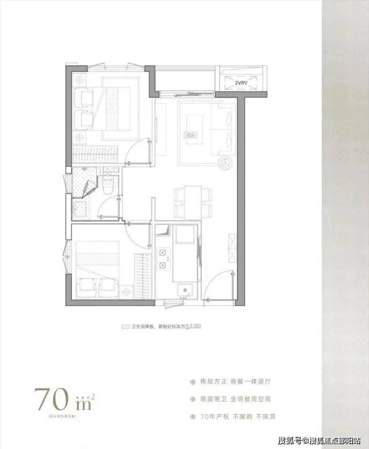 建面约70㎡,标准竖厅格局,明厨明卫,贴近住宅家庭生活需求;每个功能空间尺度都很开阔,居住体验更好,可以作为核心区住宅的“小户型平替”。预计租金水平约9000元/月。
