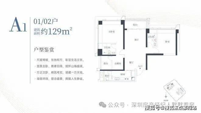 1栋一单元A1、A2户型:面积约为129㎡