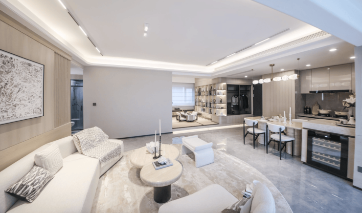 这条洄游路径,将地下空间化作家庭美术馆、威士忌吧。儿童房突破常规布局,可拆卸隔断墙伴随成长周期伸缩,今日的乐高墙未来可改为书柜。这些设计如同未雨绸缪的智者,提前应答尚未提出的生活疑问。