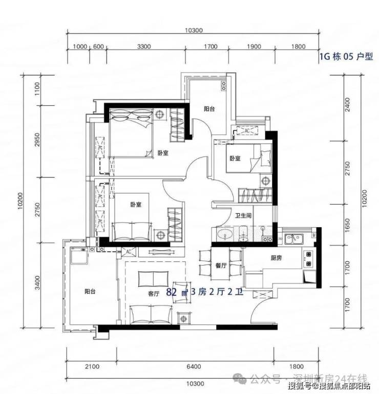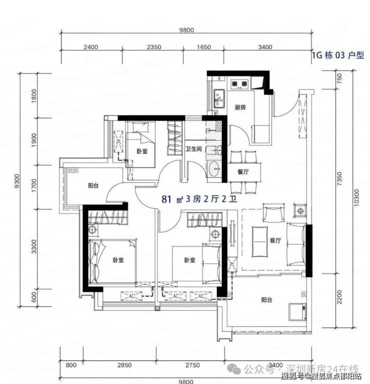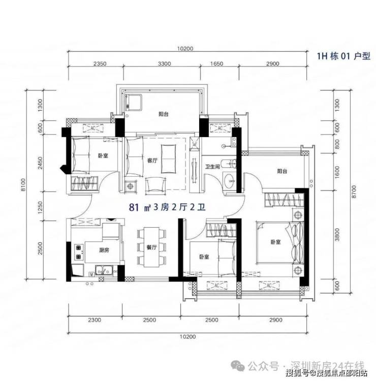 81-82m²3房2厅2卫,有竖厅和南北通户型,客厅开间3.3-3.4米,都有阳台改主卫以及增加客厅进深改造,赠送后得房率在92%左右。