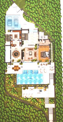 私家超大泳池,草坪活动区域,阶梯式园林分布合理规划园区