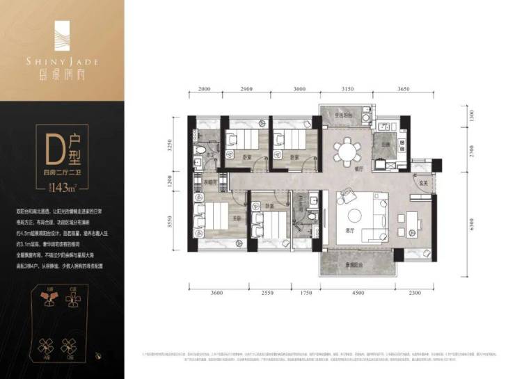 建面约143㎡四➕壹房两厅两卫双阳台