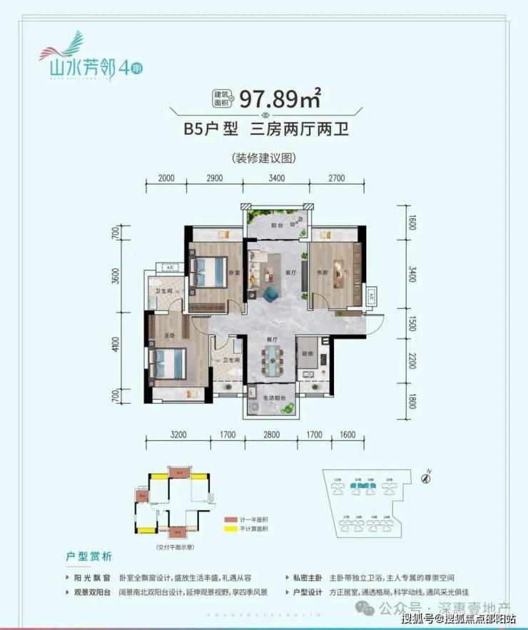双阳台设计,南北通透,高赠送