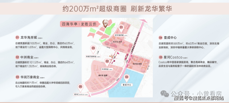 周边深圳最大型商业壹方天地、华南地区Costco(在建中)、红山6979、天虹商场等
