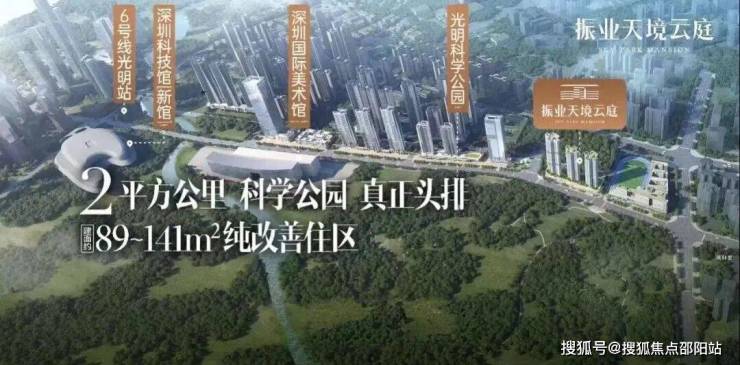 振业天境云庭,位于光明中心区光辉大道与华夏路交汇处西南侧,项目所在的光明中心区是光明规划最宜居,居住小区板块最大的片区,北侧仅靠科学公园,深圳美术馆、深圳科技馆新馆等都是位居于此