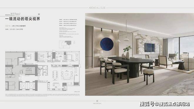 由4栋51至63层3.6-3.9米层高的纯居住奢装交付地标、两栋4.5米层高的小高层,35栋独栋,全景幕墙、宽景阳台。