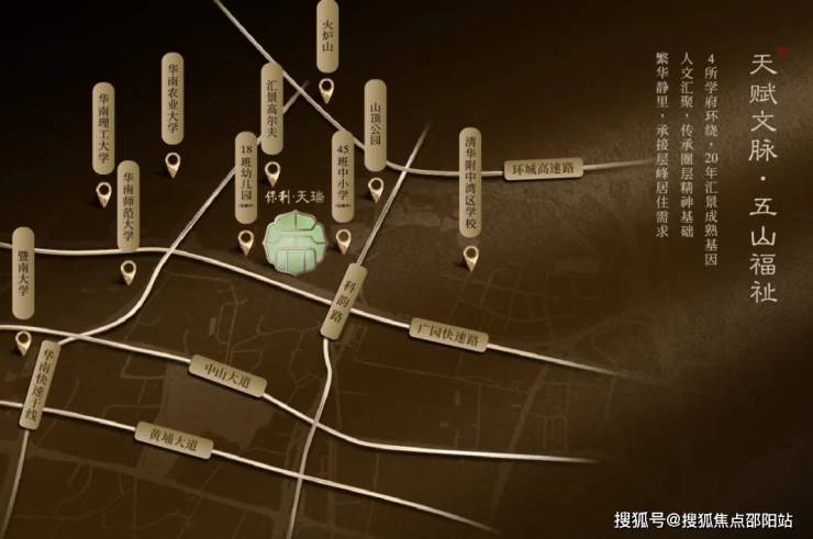 该项目坐落于天河区五山汇景板块,紧邻广园快速路与汇景大道交汇处,是保利发展央企打造的约 45 万㎡中式顶豪纯住宅大城。这一地理位置本身就蕴含着巨大的价值潜力。它不仅仅是一个简单的住宅项目,更是对未来城市顶豪生活方式的一次深刻重塑。在这里,您无需在 “CBD 通勤便利” 与 “山湖生态优越” 之间做单选题。项目背靠龙熹山公园,5 分钟车程可达,拥揽约 2000 亩城市山湖绿肺资源,在天河核心区构筑天然氧吧。想象一下,清晨在龙熹山慢跑,傍晚在高尔夫球场散步,周末带着孩子在山湖间露营,这种生活场景并非遥不可及的梦境,而是居住在保利天瑞业主的日常写照。