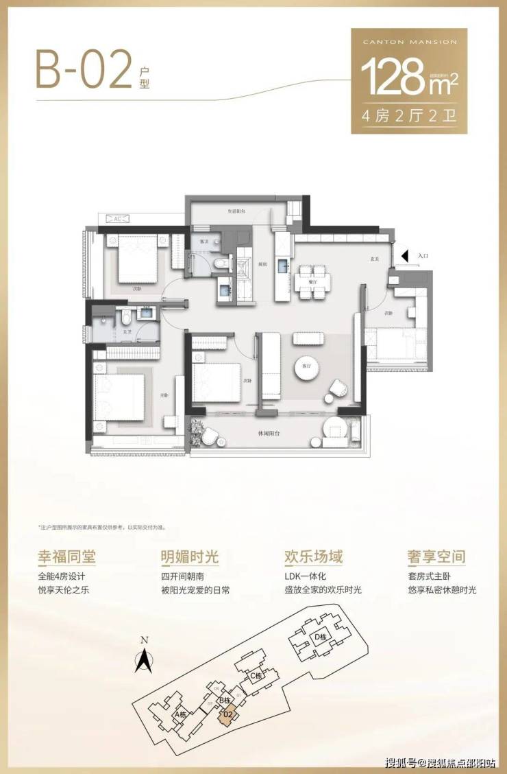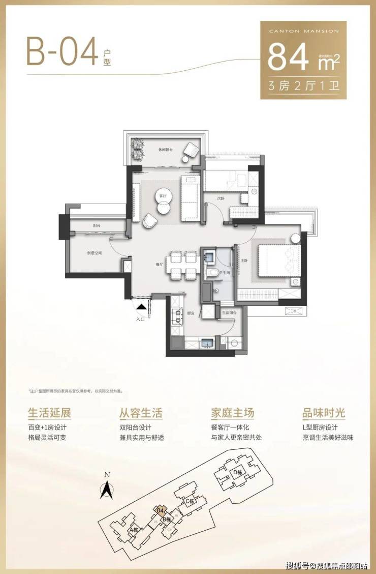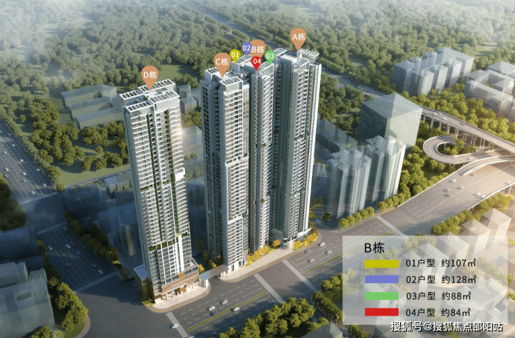 B栋产品:约84-128㎡三房至四房,三梯四户