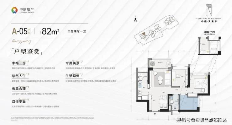 A栋产品:约82-120㎡三房至四房,三梯五户