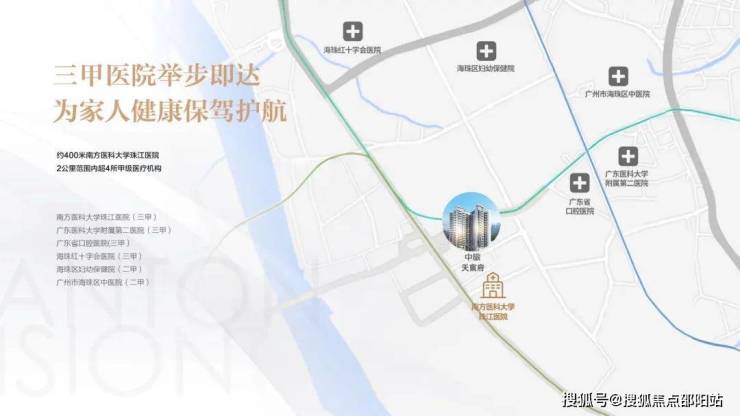 500米步行南方医科大学珠江医院,广州医科大学附属第二医院、广州市红十字会医院等多家三甲医院保驾护航。
