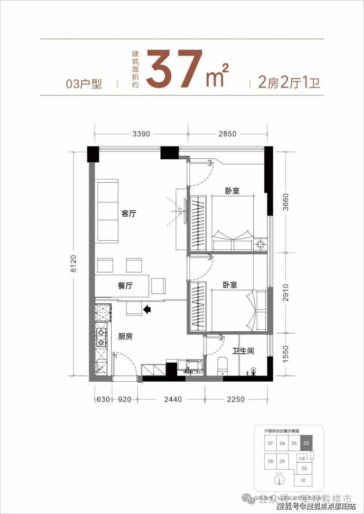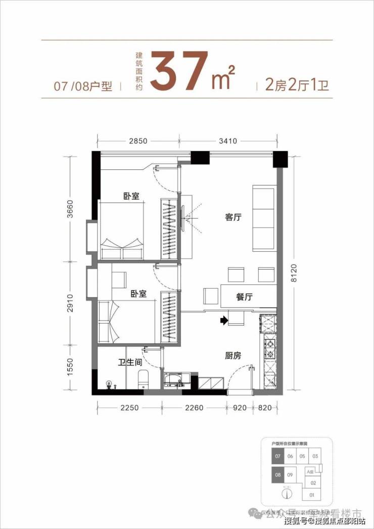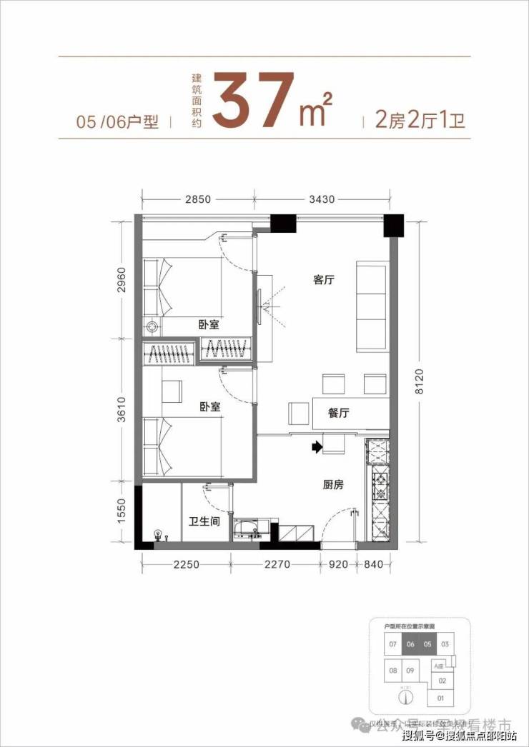 【产品面积】约37㎡小两房(实际套内使用面积接近54㎡)