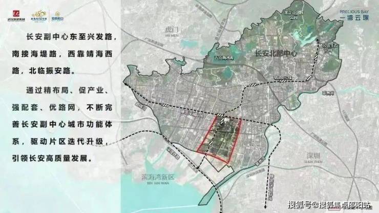 片区建设提速提质长安十四五规划中,长安开始谋划副中心,其落位于滨海湾新区旁,东至兴发路,南接海堤路,西靠靖海西路,北临振安路,辐射金沙站TOD省市合作用地范围;与深圳一水相隔,背靠穗深城际和VIVO全球总部。