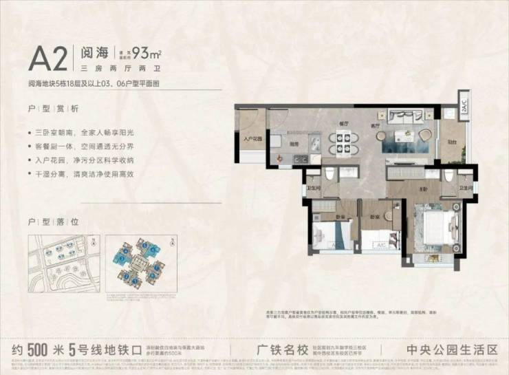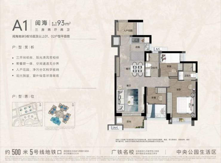【阅海93㎡三房两厅两卫|A1-01、02、07、08】三开间朝南,入户花园,客餐厨一体 【阅海93㎡三房两厅两卫|A2-03、06】,南向三开间|客餐厨一体|入户花园