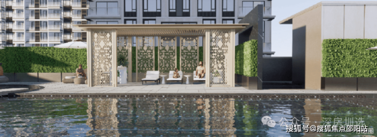 涵盖三泳道泳池、⼉童泳池、喷⽔按摩区,以及阶梯式休闲平台,予⽣活从容丰盈体验
