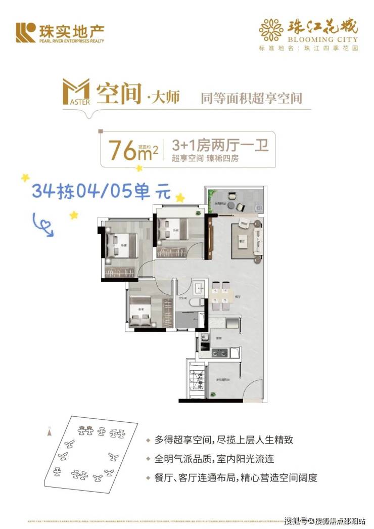 户型的设计,关乎着生活的实际感受。珠江花城【公园里】臻筑建面约76-140㎡3房+1空间至5房户型,在空间利用上颇具巧思,多得一空间的设计,不仅总价少花30万,更让居家功能与舒适感自然升级,无论是作为兴趣的天地、成长的乐园,或是静思的角落,皆由主人随心定义。