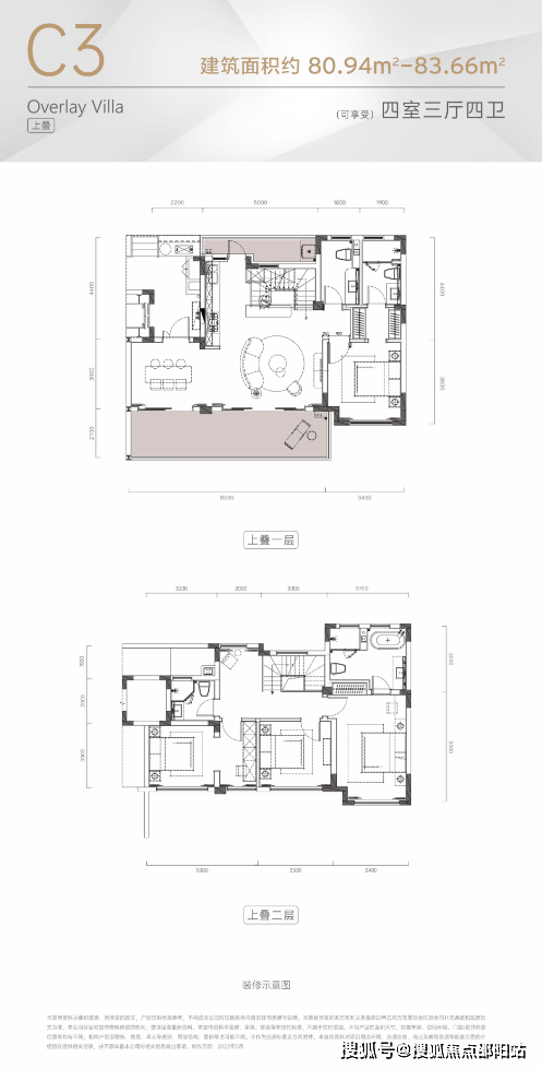 C3户型:三楼83平 买三楼送四楼阁楼 实得160平 四室三厅四卫