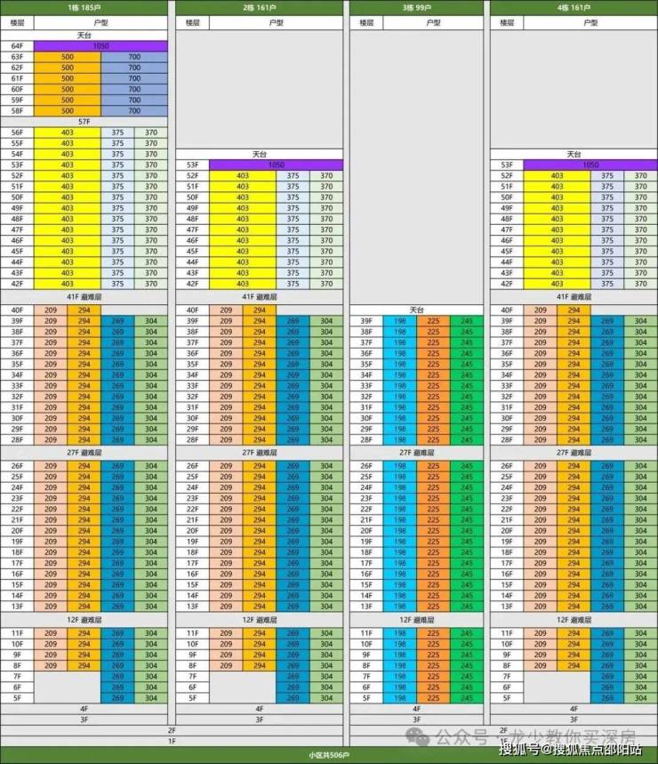 面积段已曝光,为198-245㎡,209-304㎡,370-403㎡,500-700㎡,1050㎡,约506套。
