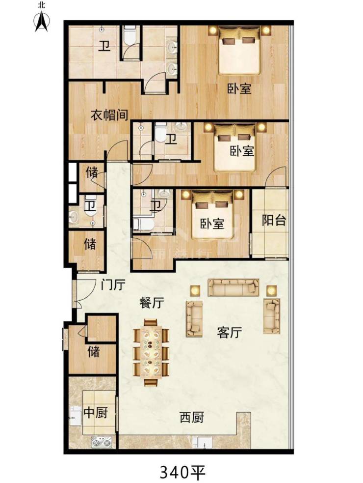 面积:340㎡3+1房4卫480㎡3+1房4卫,620㎡4+1房5卫