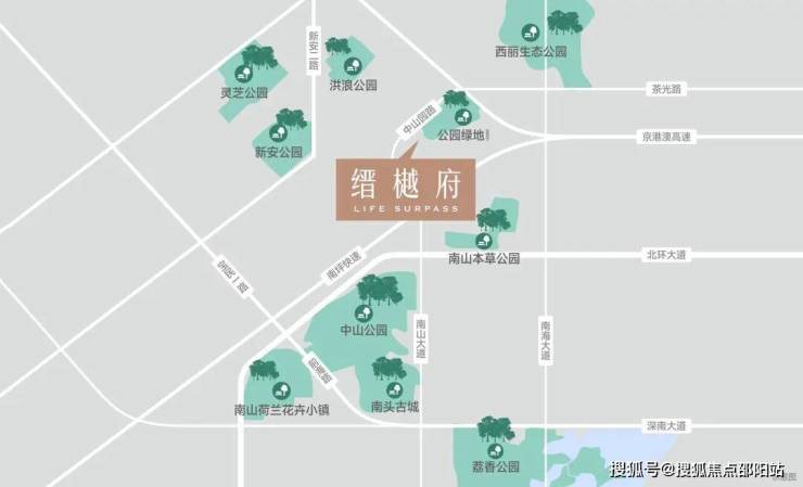 :中山公园、铁路文化公园、新安公园、荔香公园、荷兰花卉小镇等环绕,总生态绿地面积近 167 万方,自然环境优越;轻松实现南山 3 公里 City walk 生活,一面是城市的繁华便利,一面是自然的诗意静谧,宜居体验拉满。