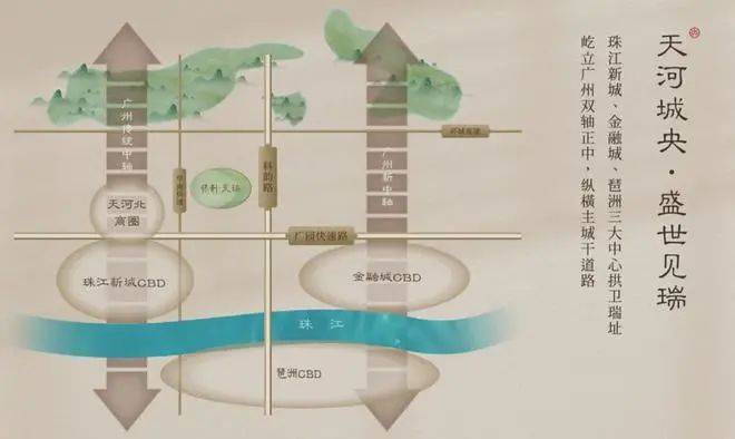 通过多条城市中心干道,可快速通勤至广州珠江新城、金融城和琶洲三大CBD,成为CBD商务区的宜居后花园。