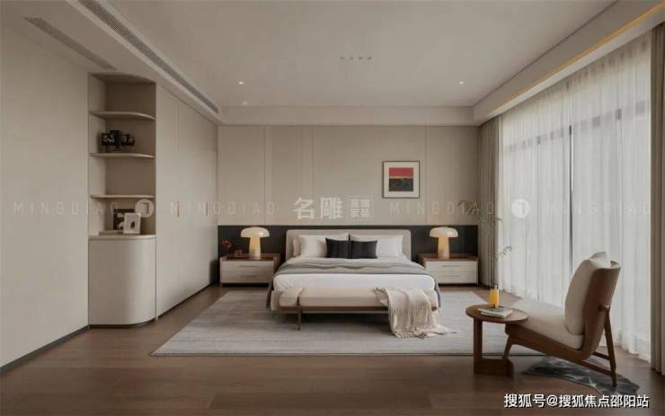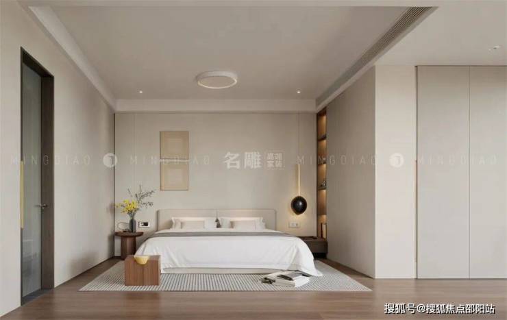 次卧摒弃了繁复的装饰和多余的元素,以纯净的空间形态和淡雅的色彩搭配,营造出一种开阔而通透的视觉感受。