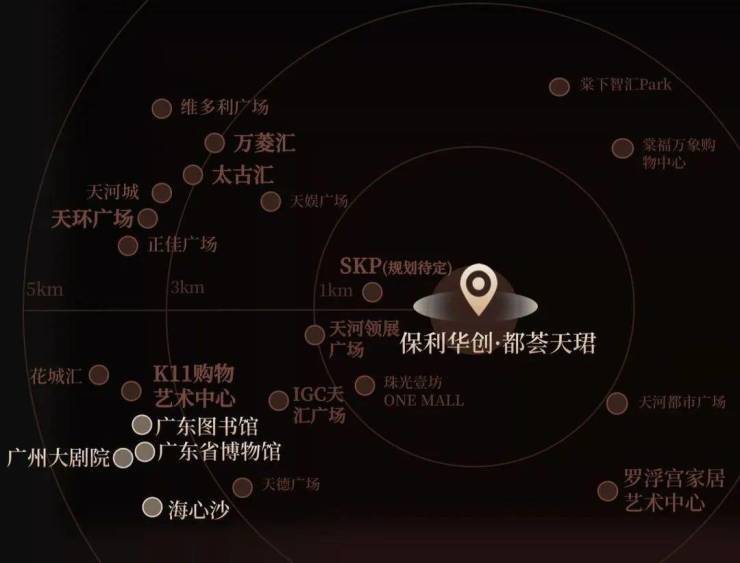 3公里范围内,也有不少商业,正佳广场、天河城、天环广场、太古汇都在这个范围。