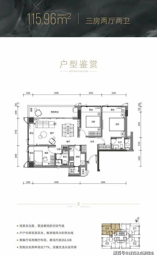 3栋由酒店、商务公寓、人才住房组成,40层加地下4层(含一层半地下室)楼高172.85米。本期销售住宅有260户,其中户型套内建筑面积小于90㎡为230套,占比88.46%。