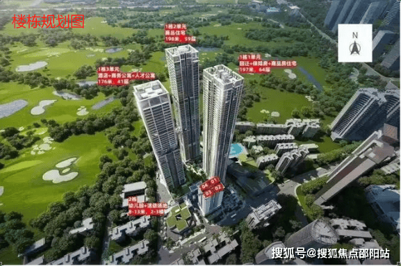 1栋由回迁房与保障性住房组成,64层加地下3层,楼高196.8米。