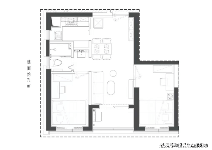【舒适梯户】44-71㎡舒居1-2房,6梯13户,便捷通达