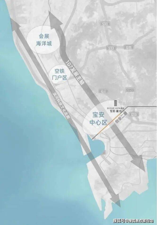 位于西部黄金中轴发展线上的——新安,占据前海“腹地”,前海+宝安中心区双中芯辐射,城市核芯资源尽皆于此。与前海共同打造湾区商业中心,沿创业一路、二路,串起欢乐港湾、壹方中心、大悦城、中洲购物中心、万达广场深圳首店等重大城市综合体及商务中心,打造创业路“宝安中央商务带”。
