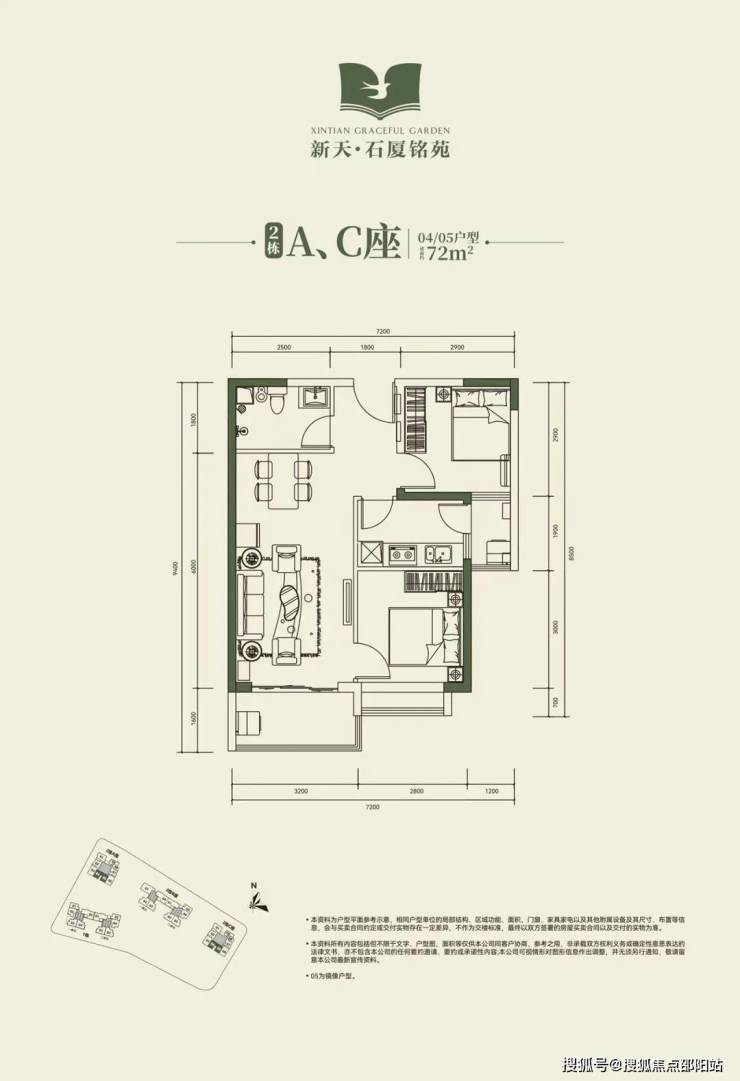 2栋B座二单元04、05户型:面积约为72-74㎡的2房2厅1卫。