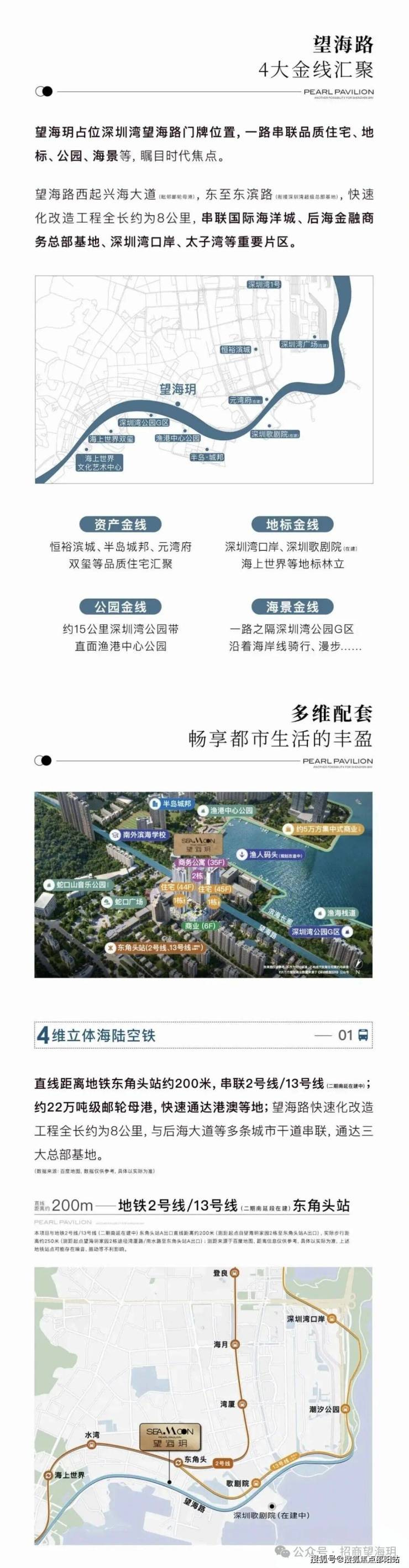 项目西邻海上世界,东靠歌剧院和深圳湾口岸,南侧直面深圳湾海岸线,下楼即达滨海长廊,与大家熟知的半岛城邦豪宅区仅隔一个渔港。