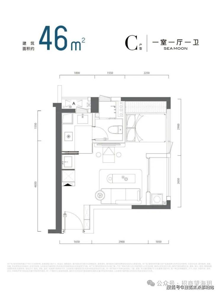 约46㎡的一房一厅C户型,折扣总价约:232-280万。