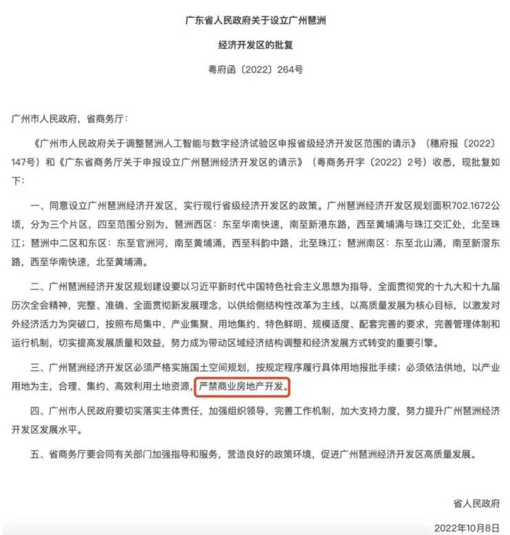 广州琶洲经济开发区正式获批,《批复》申明琶洲西区严禁商业房地产开发!