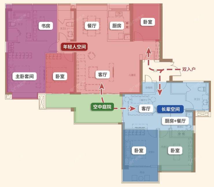 丨一期252㎡空中合院四进空间示意