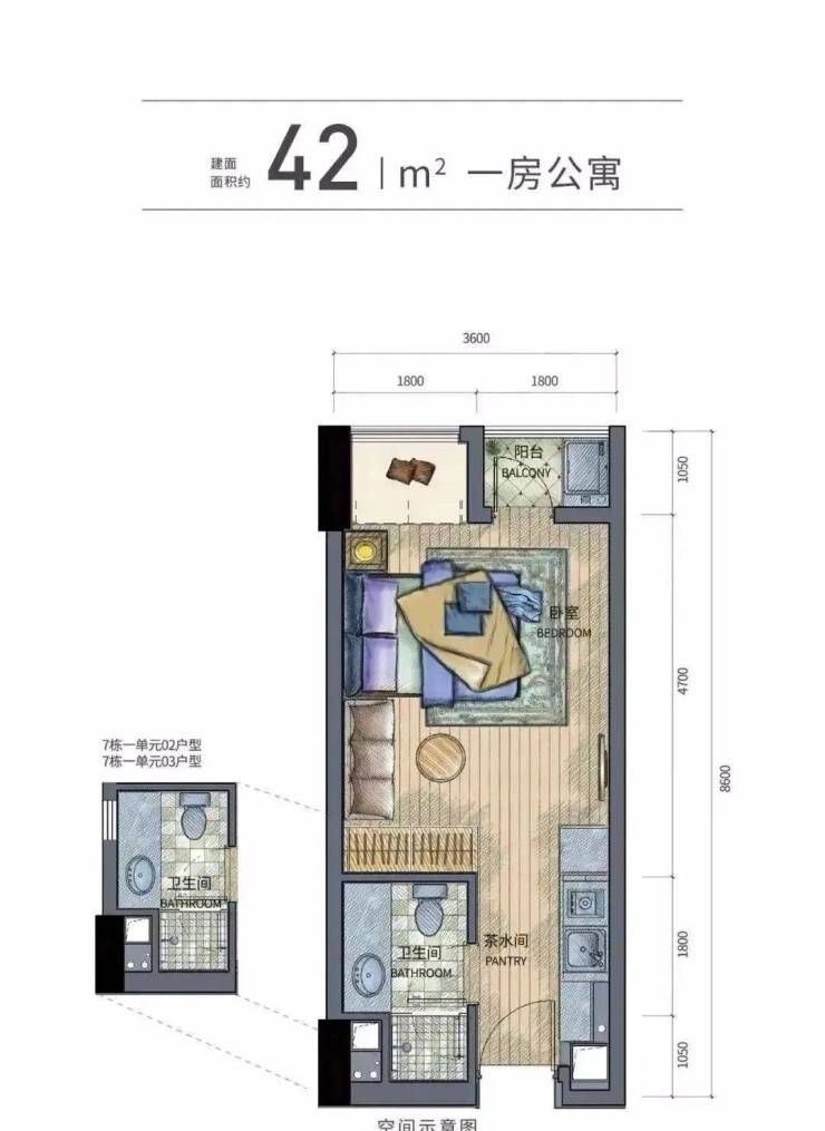 小户型:42-65㎡一居室/两居室(总价122万起)