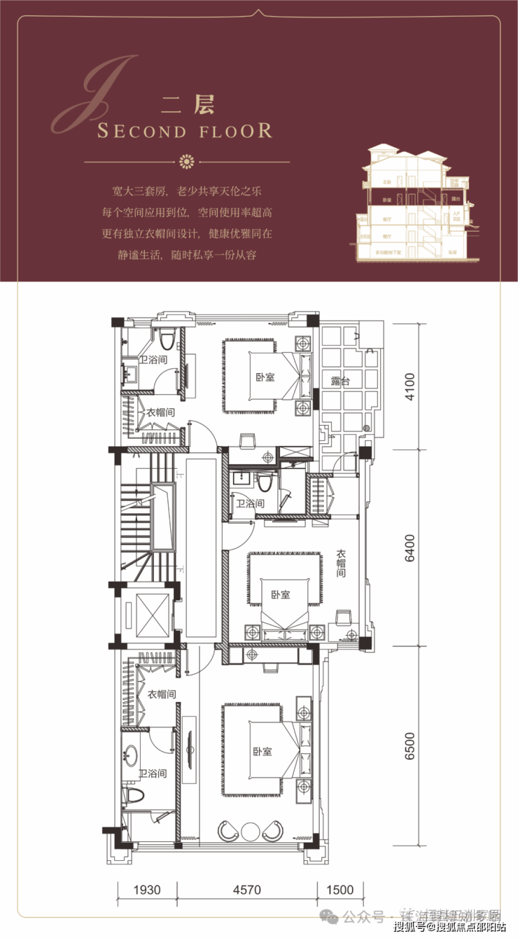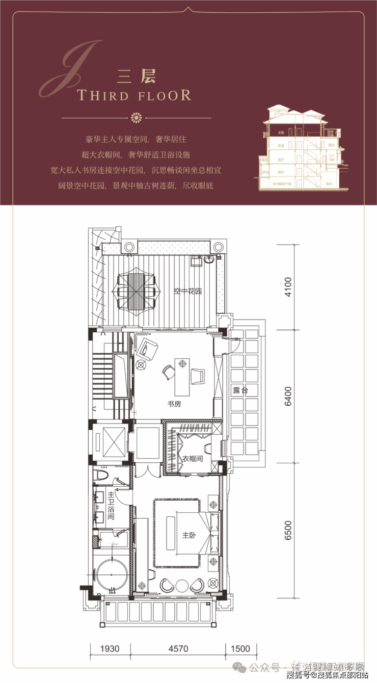 •三楼:专属主人层空间,带书房、露台、衣帽间、卫生间。