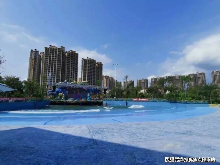 惠州富力湾水上乐园,占地1.2万㎡,以水上互动体验为理念,呈现贝壳扇形状,离海20m,设置有冲浪池、大回环滑梯、螺旋管道、观景平台等设施。水上乐园将多种亲水游玩设施搬入社区内,运营后将举办多类亲水活动,增加项目休闲度假氛围。