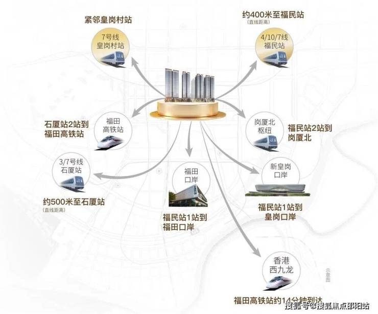 地铁7号线皇岗村站就在家门口,步行100米。往西一站到石厦站换乘3号线,往东一站到福民站换乘4号线和10号线,4条地铁线环绕。2站到皇岗口岸或福田口岸,过关去香港分分钟的事。福田高铁站2站,14分钟到香港西九龙。
