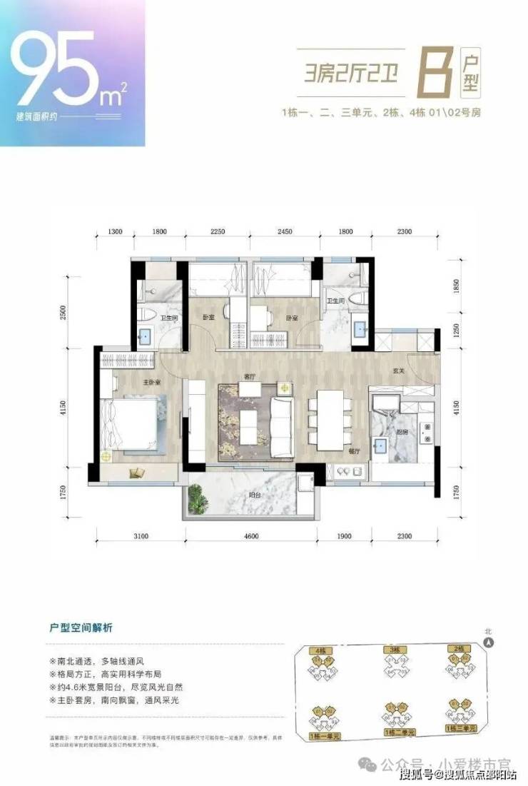 建面约78-128㎡全能户型,南北通透+270°转角阳台