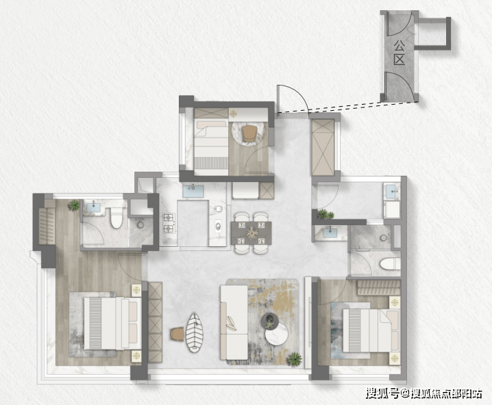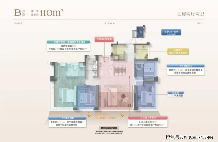 得房率约110%,同等面积多套房;约99㎡户型做到约35㎡LDKB厅餐客一体化设计,不仅有可变双套房,还有270°无遮挡视野。在建筑排布上,做到栋栋视野无遮挡,户户南向瞰山景;