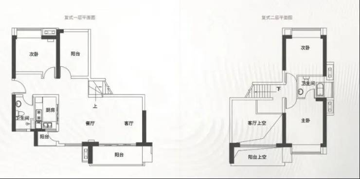 02户型建面约141㎡复式,三房两厅两卫设计,公卫设在一楼。